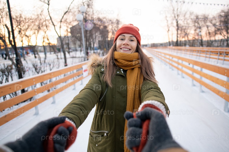 Женщина катается на коньках со своим парнем