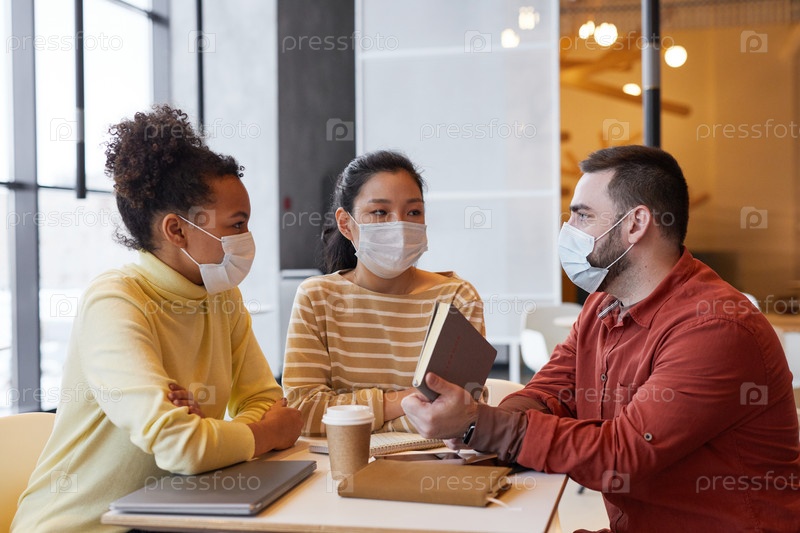 Люди, носящие маски за столом