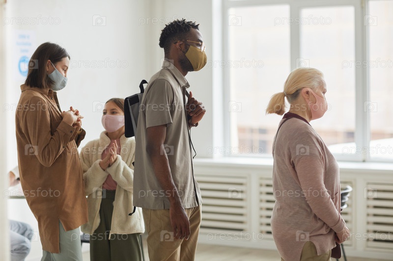 Разнообразная группа людей, ожидающих очереди в клинике
