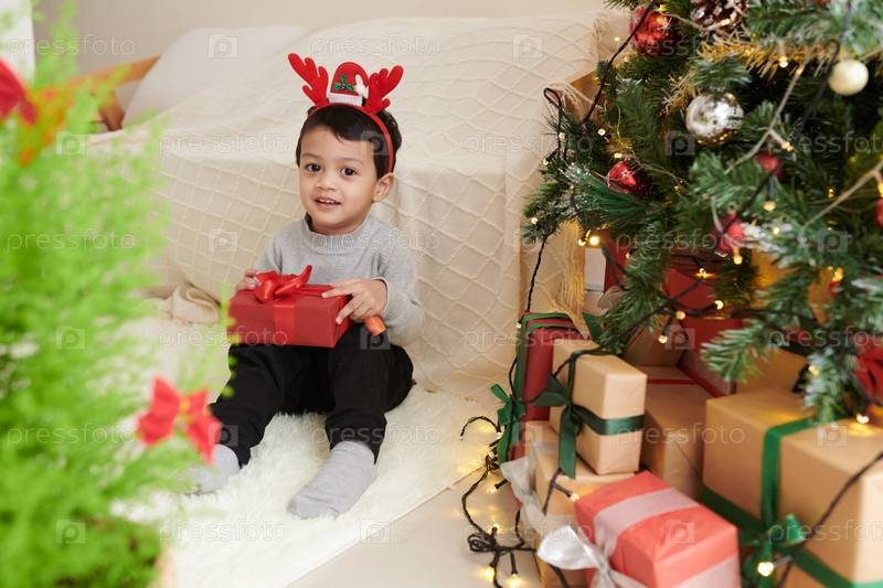 Маленький мальчик с рождественским подарком