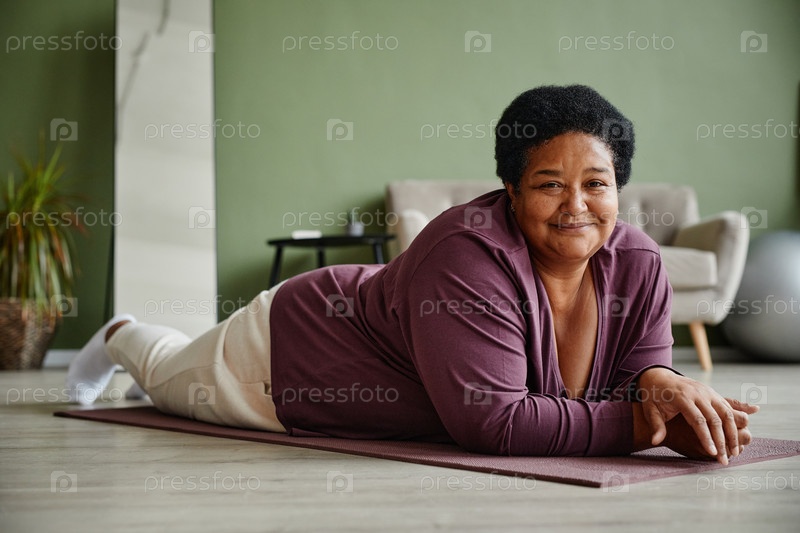 Черная старшая женщина наслаждается домашней тренировкой