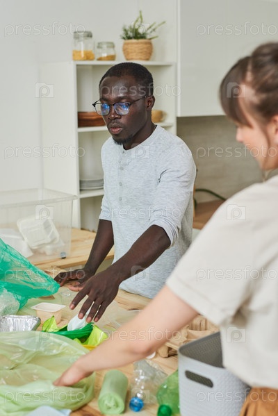 Молодая пара сортирует мусор