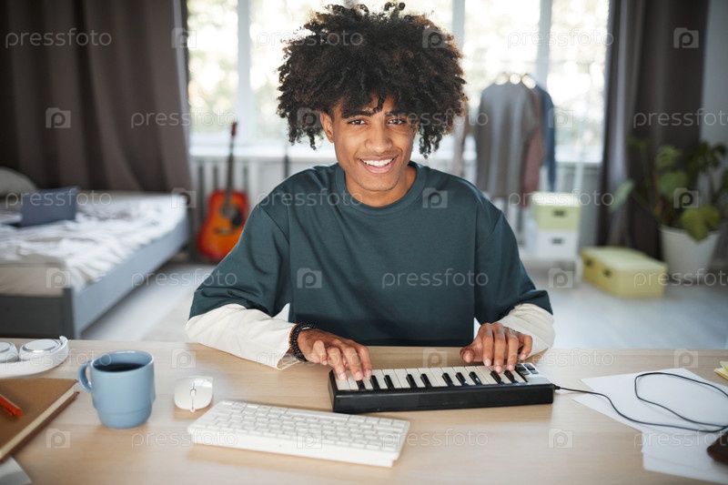 Молодой человек сочиняет музыку