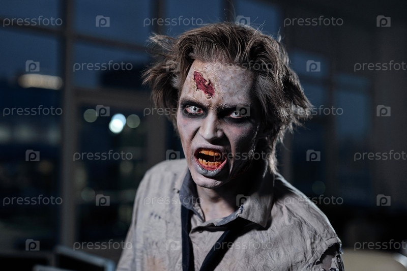 Страшный зомби-бизнесмен с жутким выражением лица