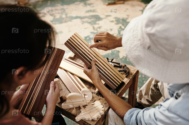 Плотники обсуждают деревянные доски