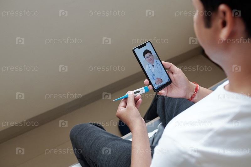 Мужчина, использующий приложение телемедицины