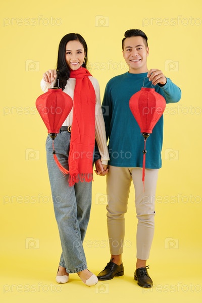 Пара, показывающая шелковые фонари