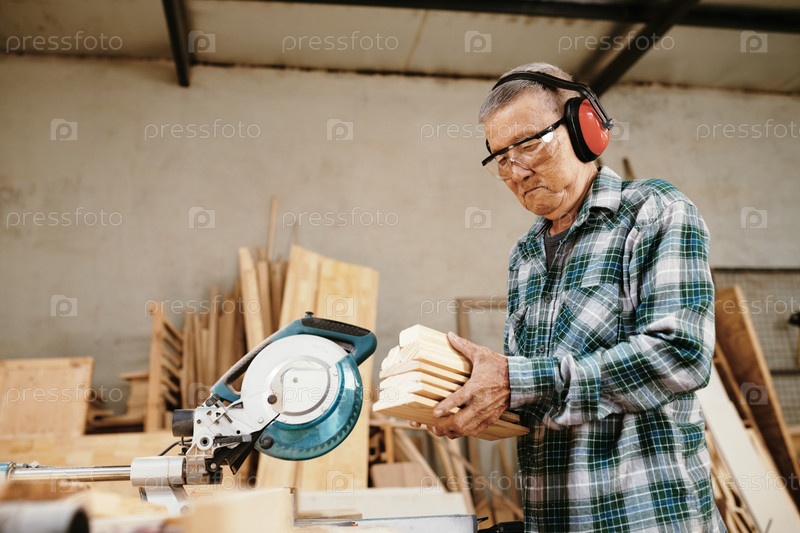 Плотник, режущий деревянные доски