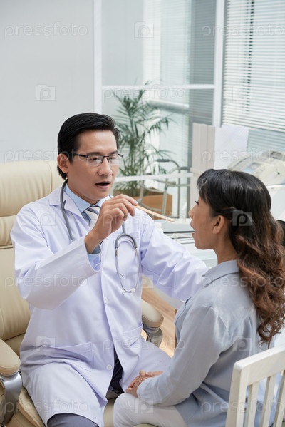 Врач проверяет горло пациента