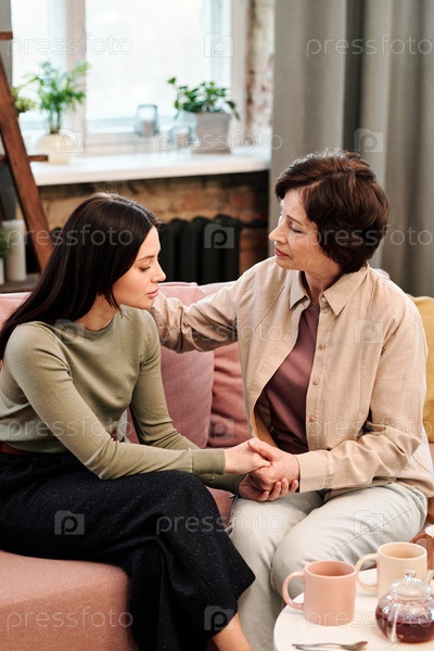 Зрелая женщина утешает свою расстроенную дочь