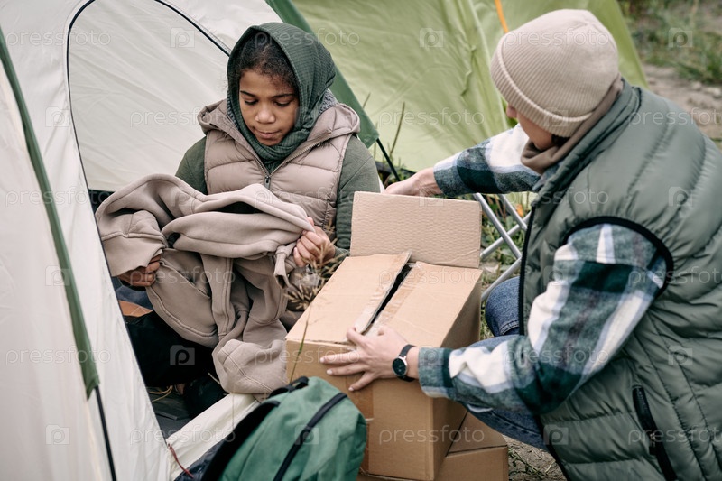 Семья беженцев устроилась в палатку
