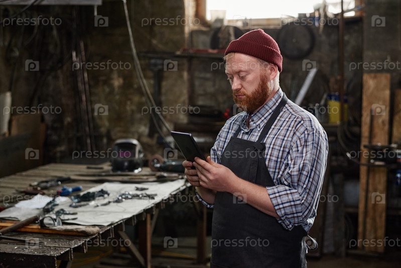 Работник, использующий планшетный компьютер на работе