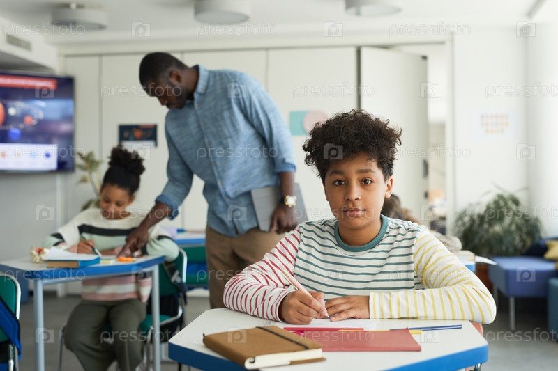 Портрет мальчика за столом в школе