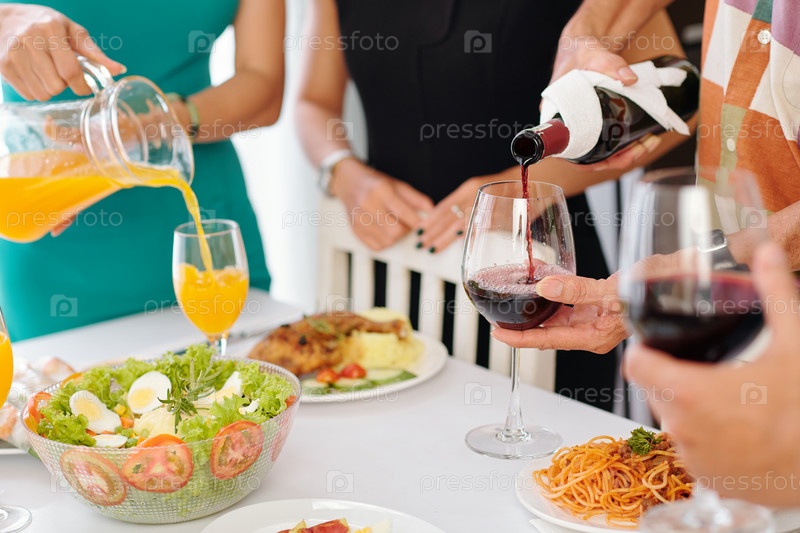 Налейте напитки на ужине