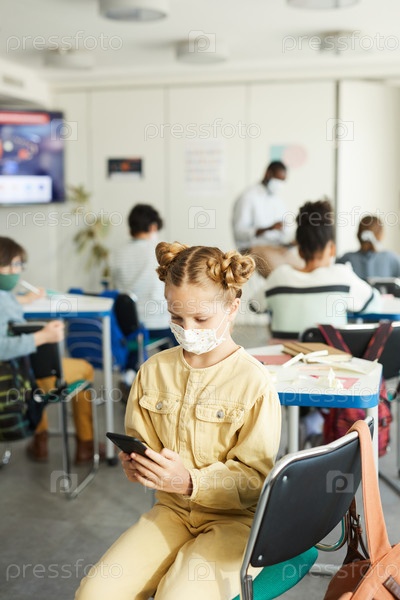 Милая девочка-подросток, которая носит маску в классе