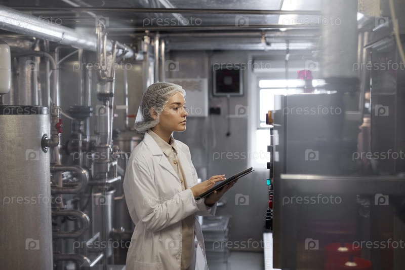 Молодая женщина контролирует производство