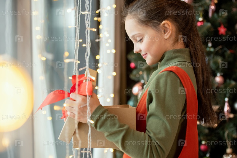 Красивая девушка с рождественским подарком