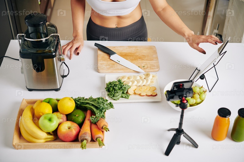 Пищевой блоггер делает смузи
