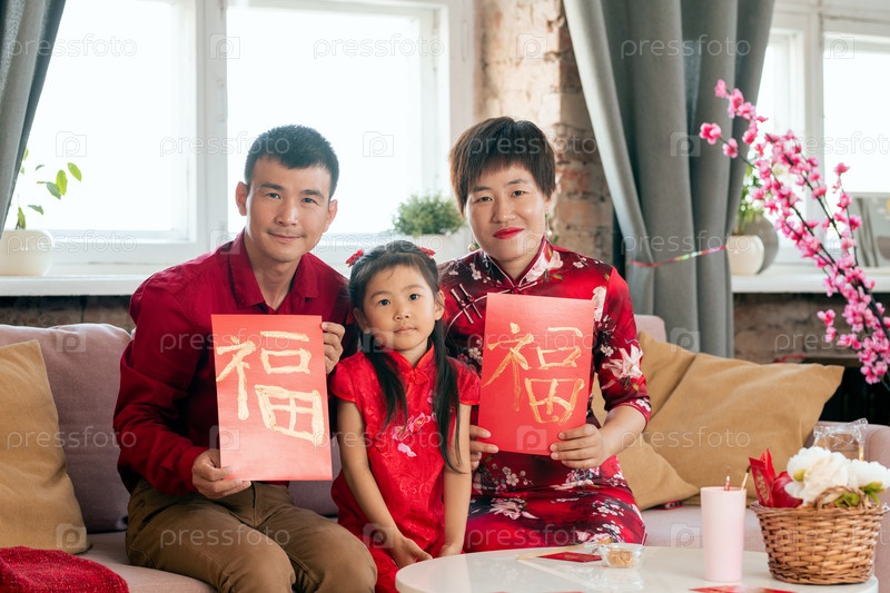 Члены семьи показывают ручной работы новогодние открытки
