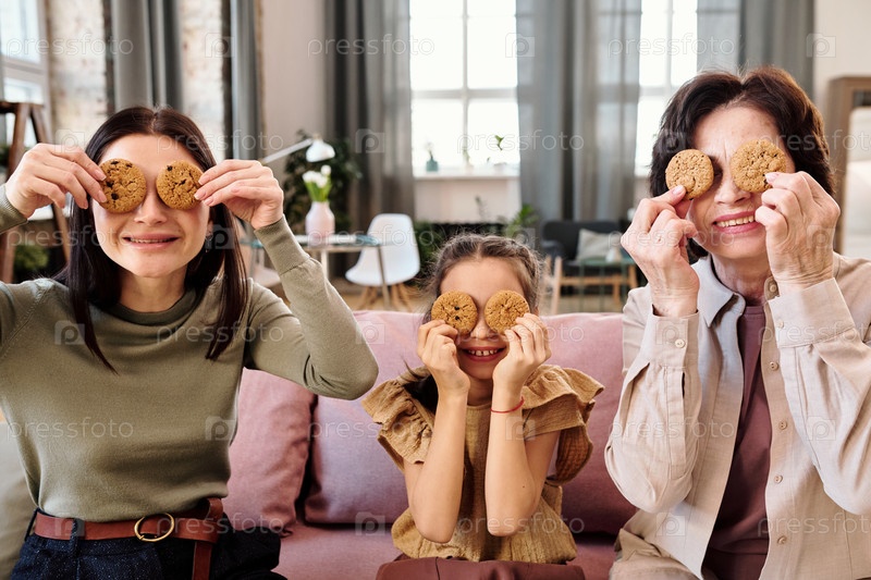 Три веселые женщины, держащие печенье за глаза