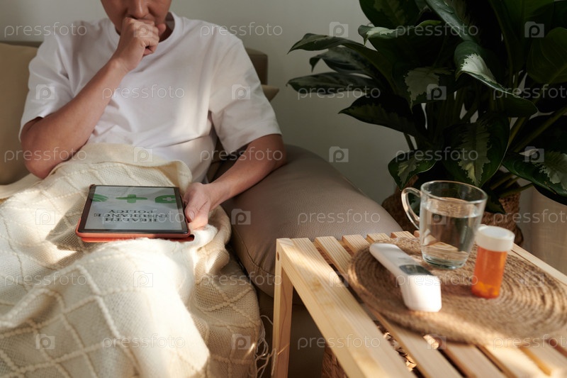 Человек с кашлем проверяет страховой полис