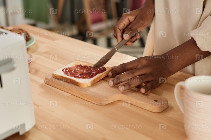 Женщина готовит тосты с вареной конфетой на завтрак