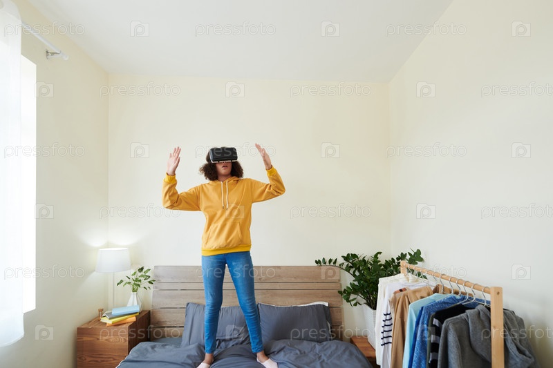 Подростковая девушка играет в интерактивную видеоигру