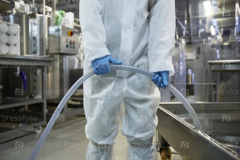 Работник заполняет резервуары на фабрике