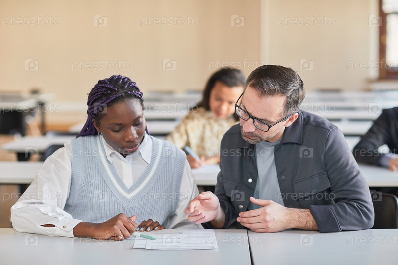 Профессор помогает студентам в классе