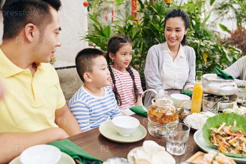 Мальчик читает стихотворение на семейном ужине