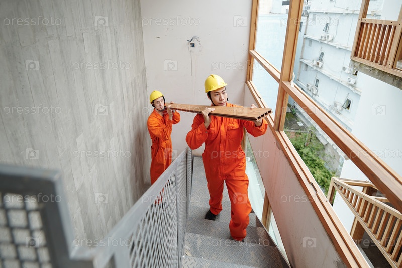 Работники борются за то, чтобы нести длинный стол