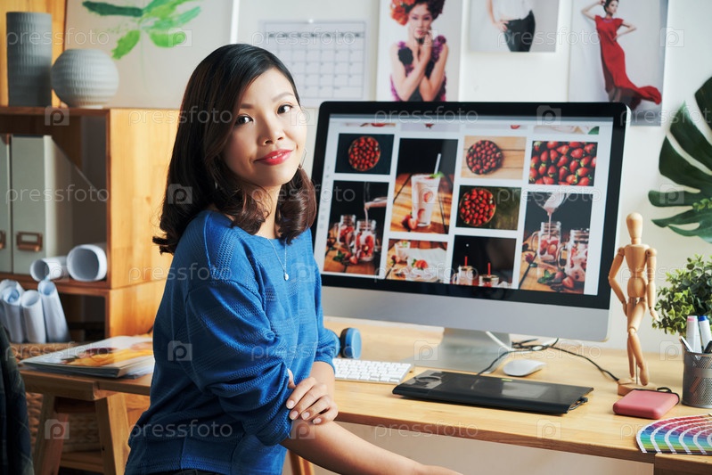 Портрет улыбающегося азиатского фотодизайнера