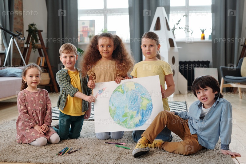 Дети показывают фотографию нашей планеты