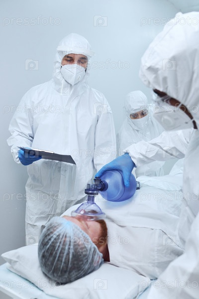 Мужчина с кислородной маской в больнице