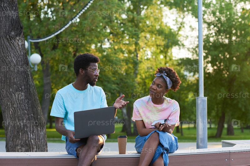 Молодая пара, работающая на свежем воздухе