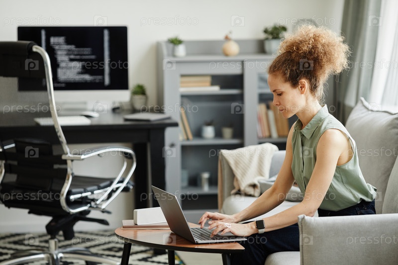 Женщина, работающая удаленно из дома