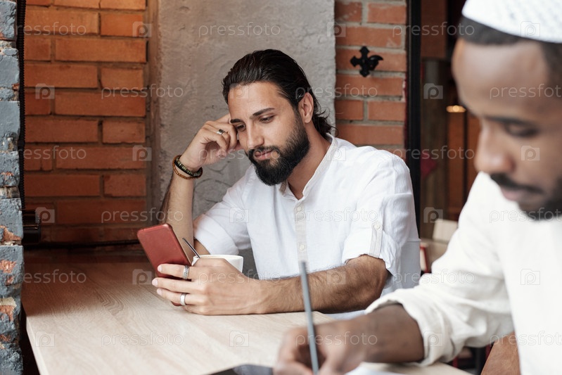 Бородатый исламский парень прокручивает социальные сети