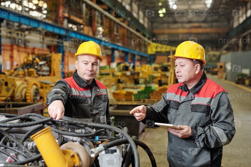 Мужчины в шляпах работают над машиной