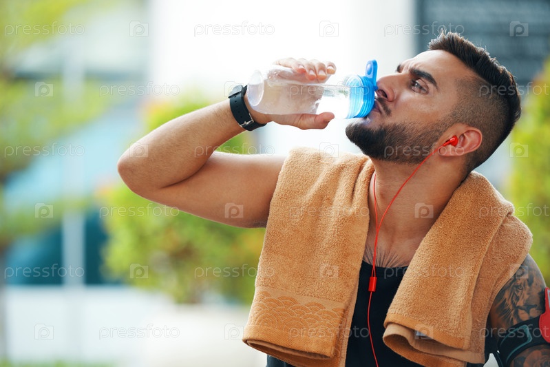 Жаждущий спортсмен пьет воду