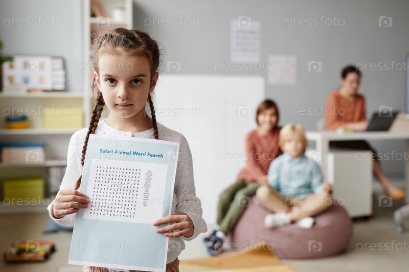 Школьница держит домашнее задание