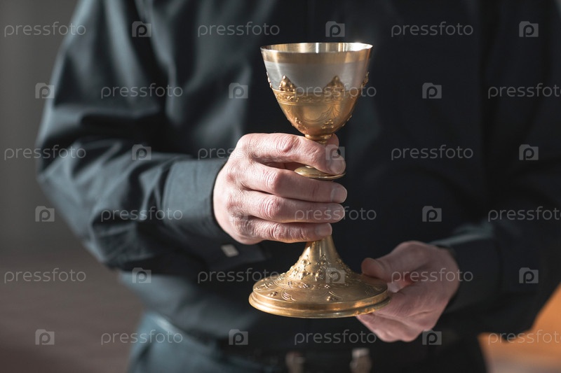Священник держит чашу