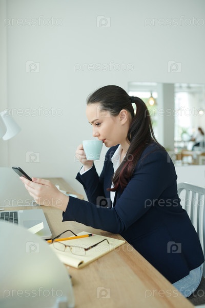 Деловая женщина проверяет смартфон
