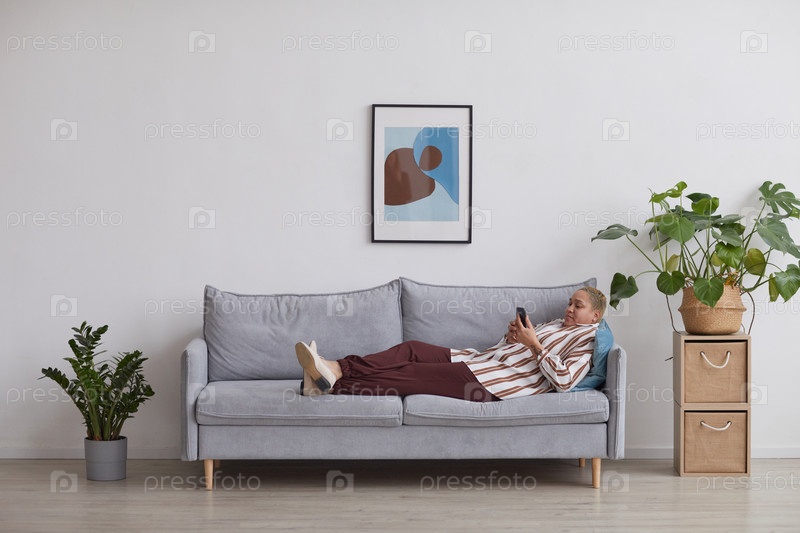 Современная женщина смешанной расы, отдыхающая на диване