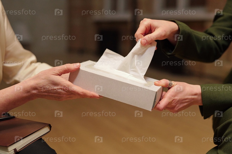 Молодая женщина вынимает бумажный платок из коробки