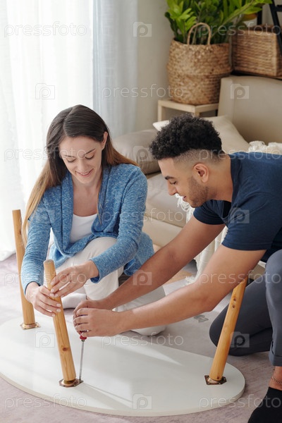 Пара собирает новый кофейный стол