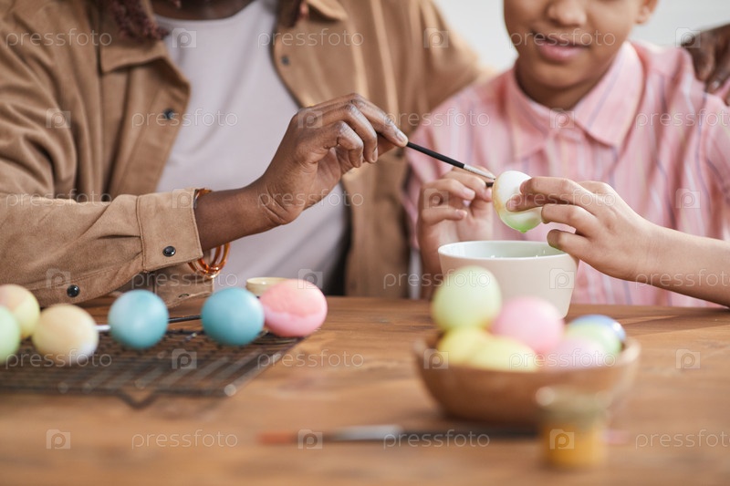 Мать и дочь рисуют пасхальные яйца вместе