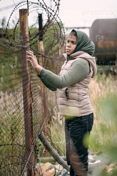 Девушка у колючей проволоки