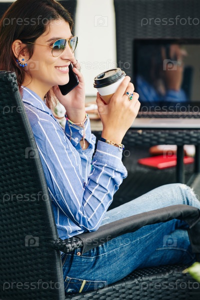 Улыбающаяся женщина разговаривает по телефону
