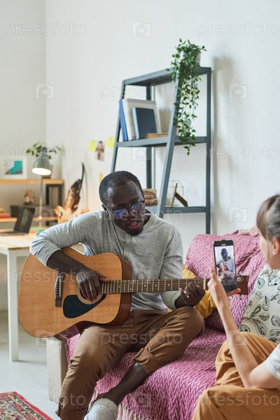 Пара играет на гитаре и поёт песни