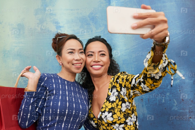 Женские друзья делают селфи